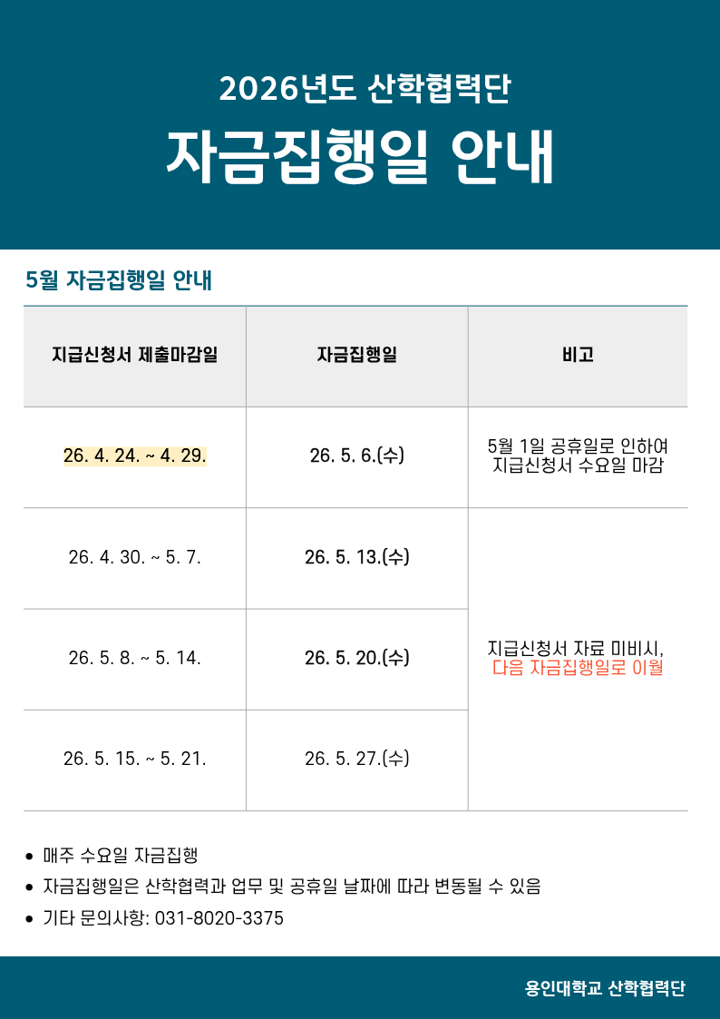 2026학년도 산학협력단 5월 자금집행 안내
